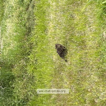 Chat adulte se promenant en bas des immeubles en boitant. Je l’ai appelé, il s’est arrêté mais je n’ai pas pu l’approcher. Il avait une queue courte (sûrement cassée). Je ne sais pas s’il est perdu mais étant donné qu’il a l’air blessé c’est fort probable. Il est tigré noir et gris.