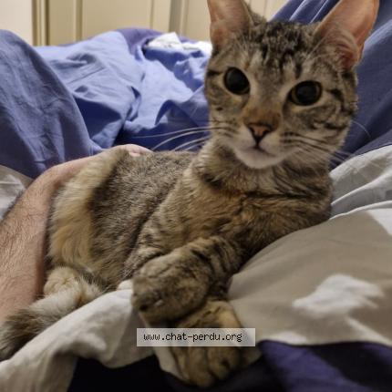 Chaton perdu à Nîmes quartier mont duplan. Elle a 9 mois et c'est la première fois qu'elle sort de la maison. Elle répond à son nom et est très câline